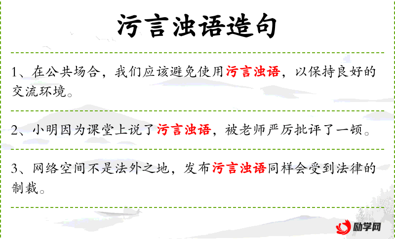 1. 【污言浊语】 - 指粗俗下流、不堪入耳的话。