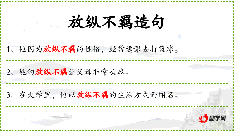 - 放纵不羁:形容词短语,指行为不受约束,自由散漫。