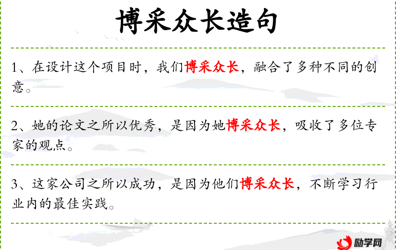 - 使用“博采众长”这样的成语,增加了表达的文雅和深度。