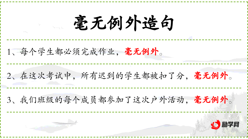 1. 【毫无例外】 - 指全部如此,没有例外。
