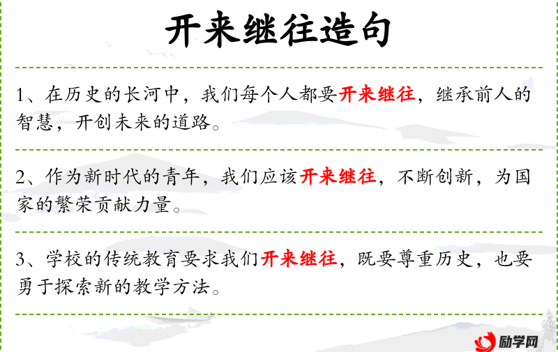 - 开来继往:继承前人的事业,并继续发展。