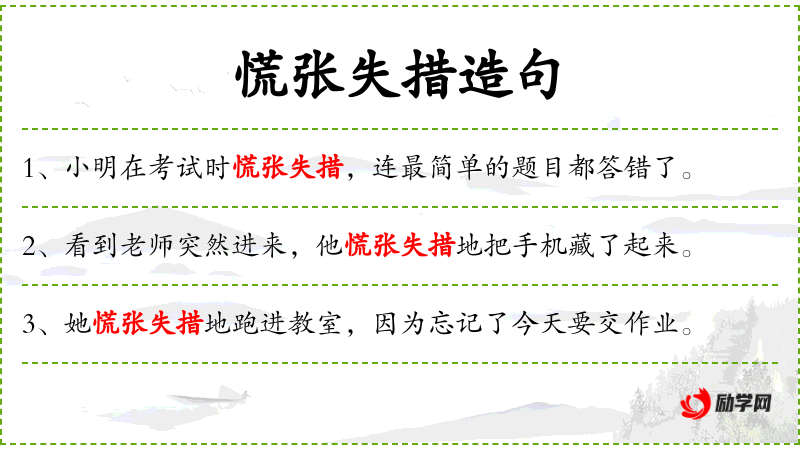 - “突如其来的问题让她慌张失措,无法找到答案。”
