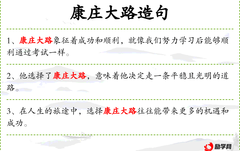 - 康庄大路:这个成语源自**古代,比喻正直、光明的道路。在现代语境中,它常用来强调坚持正确的价值观和行为准则。