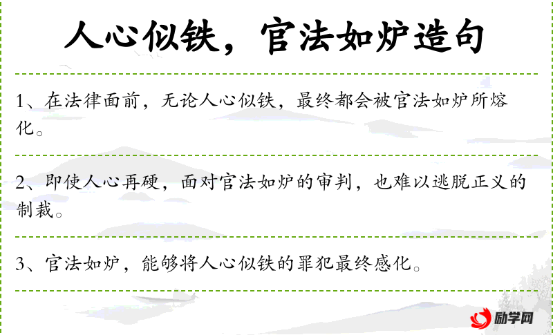 句子:“在法律面前,无论人心似铁,最终都会被官法如炉所熔化。”