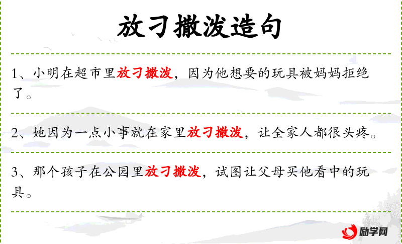 - 放刁撒泼:形容孩子无理取闹,行为不端。