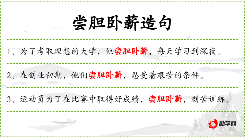 - 文化背景:“尝胆卧薪”是一个**成语,源自古代历史故事,体现了中华民族的坚韧和毅力。