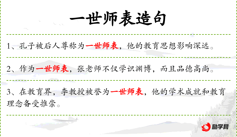 师表:学习的榜样。足以供一代人效法,起表率作用的人。