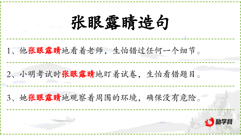 - 张眼露睛:形容词性短语,形容非常专注或兴奋的样子。
