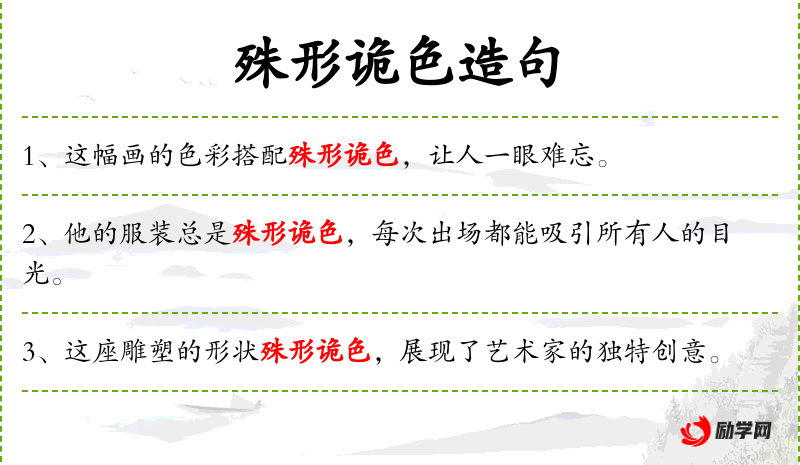 2. 【殊形诡色】 - 事物奇异特殊的形色。