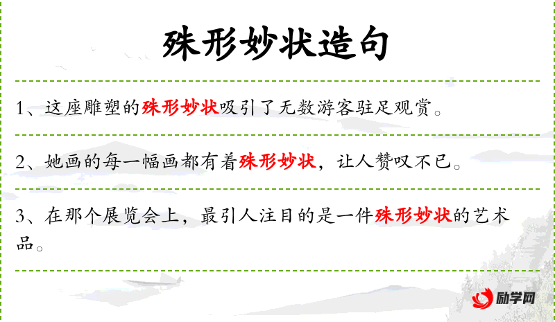 3. 【殊形妙状】 - 奇妙特异的形状。