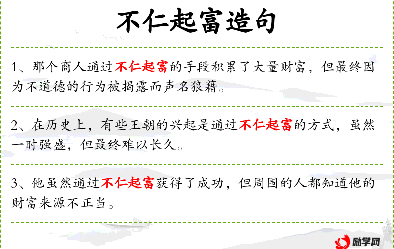 1. 【不仁起富】 怀着坏心肠创立富业。指心狠手辣,不择手段地图谋发家致富。