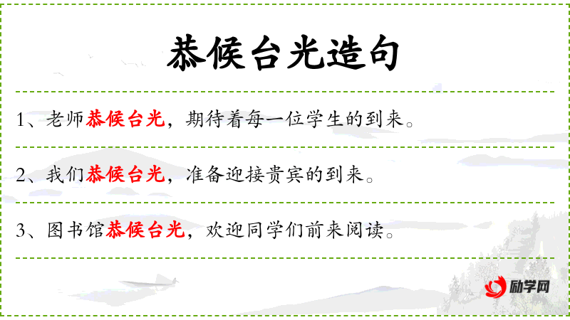 - 恭候:礼貌地等待,常用于正式场合。