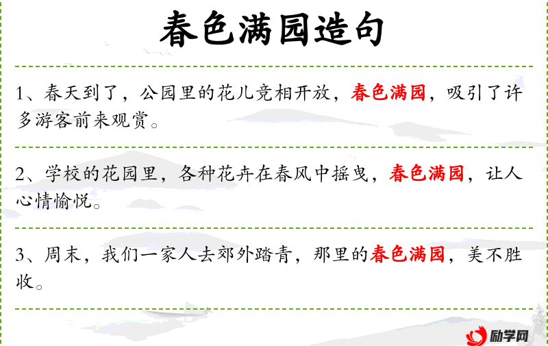 - 句子中“春色满园”体现了**文化中对春天的赞美和期待,春天常被视为新生和希望的象征。