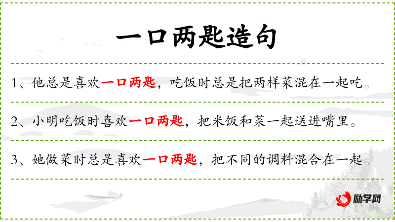 - 混合:动词,表示将不同物品或成分结合在一起。