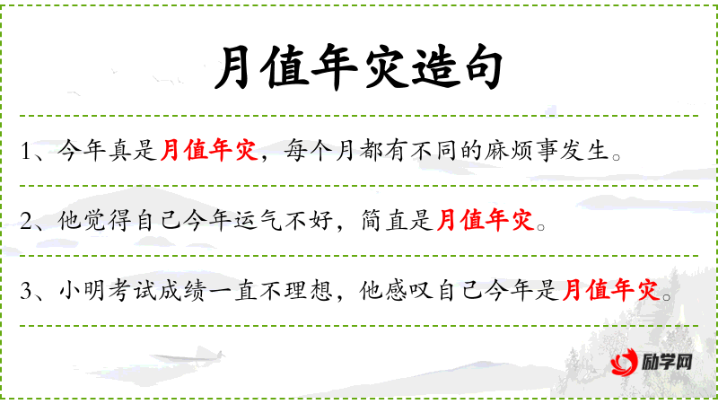 1. 【月值年灾】 - 指时运不济而遭灾祸。