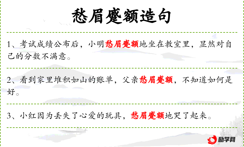 - 谓语:愁眉蹙额,显得非常紧张