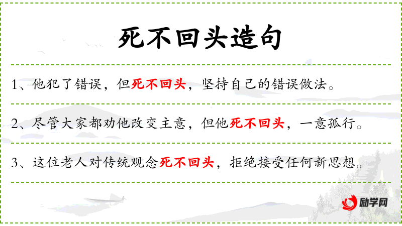 2. 【死不回头】 - 指到死也不反悔,形容意志坚决。