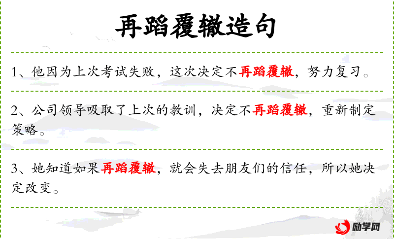 句子:“他因为上次考试失败,这次决定不再蹈覆辙,努力复*。”