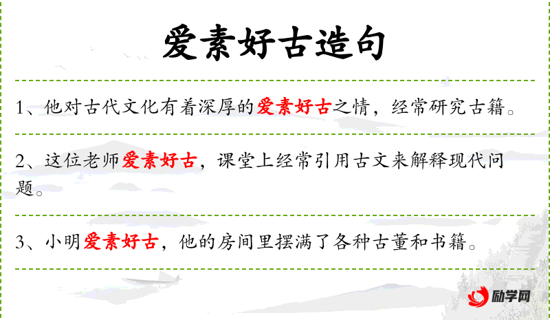 2. 【爱素好古】 指爱好朴质,不趋时尚。
