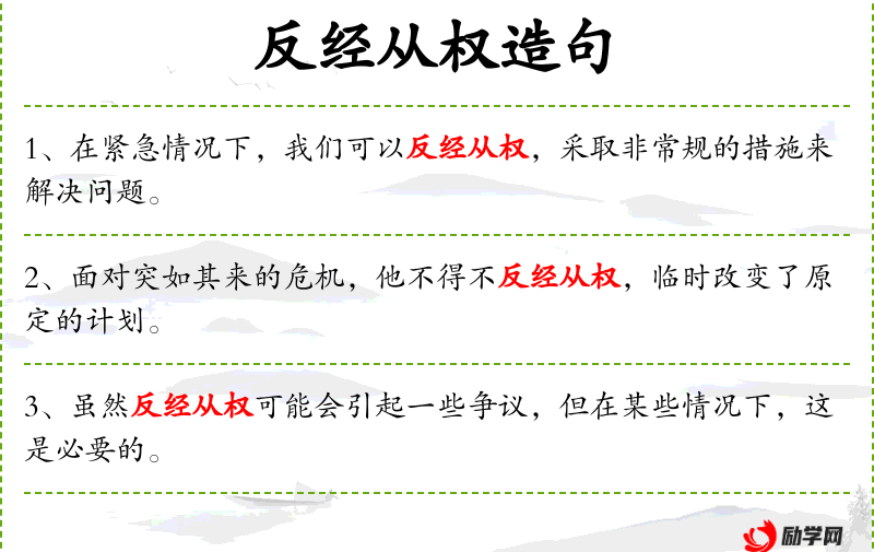 - 反经从权:这一表达体现了**传统文化中的“权变”思想,即在特定情况下,可以不拘泥于常规,灵活应对。