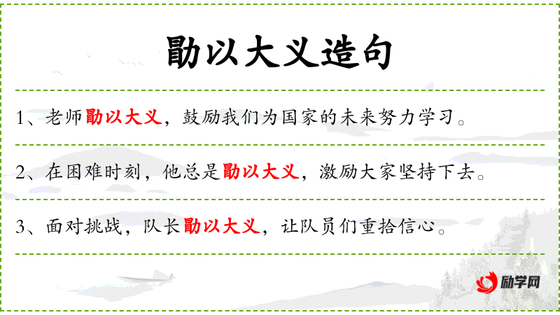 - 勖以大义:勖(xù)意为勉励,大义指高尚的道德原则或公共利益。这里表示演讲者用高尚的道德原则来勉励听众。