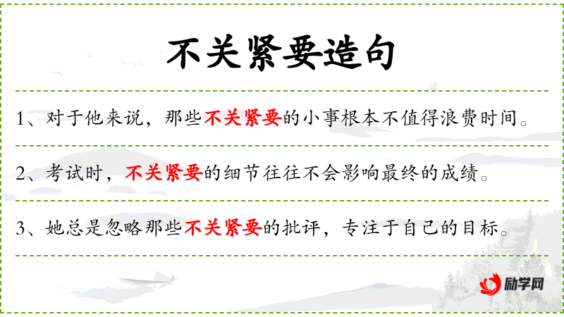 1. 【不关紧要】 紧要:急切的,重要的。不重要,不会影响大局。