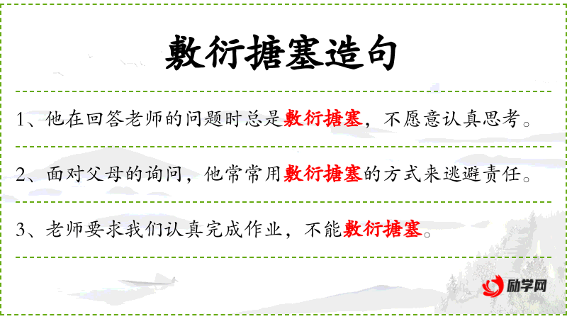 - 主语:“敷衍搪塞”是句子的主语,指的是一种不负责任、不认真的态度。