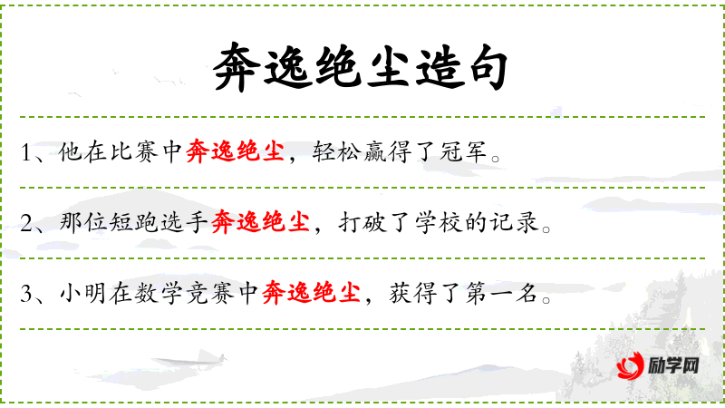 句子:“小明在数学竞赛中奔逸绝尘,获得了第一名。”
