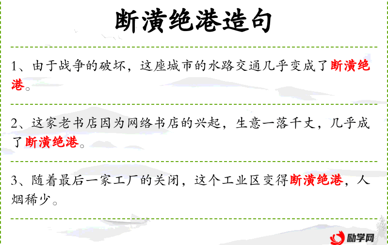 句子:“由于环境污染,这个曾经繁华的渔村现在成了断潢绝港。”