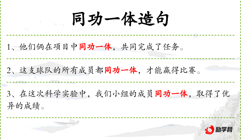 句子:“在这次社区服务中,所有参与者同功一体,为社区带来了积极的变化。”