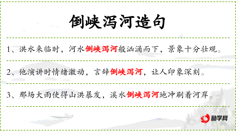 - “周围的人被她的笑声如倒峡泻河般感染了。”