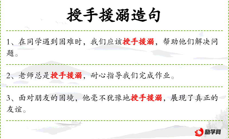 - 授手援溺:这个成语源自**传统文化,比喻在别人遇到困难时伸出援手。