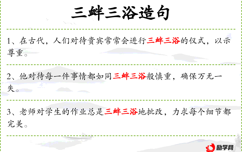 - 三衅三浴:源自**古代的礼仪,表示对某事物的极度尊重和慎重对待。