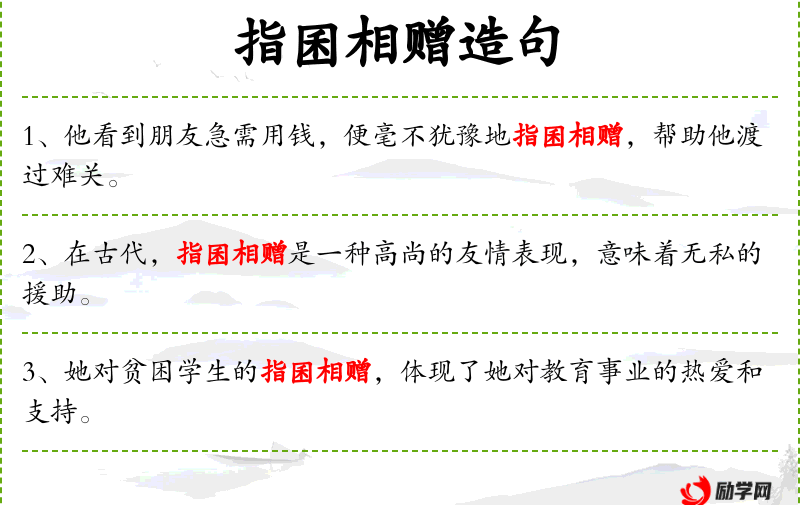 句子:“在古代,指囷相赠是一种高尚的友情表现,意味着无私的援助。”