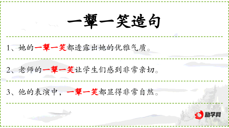 1. 【一颦一笑】 颦:皱眉。指忧和喜的表情。