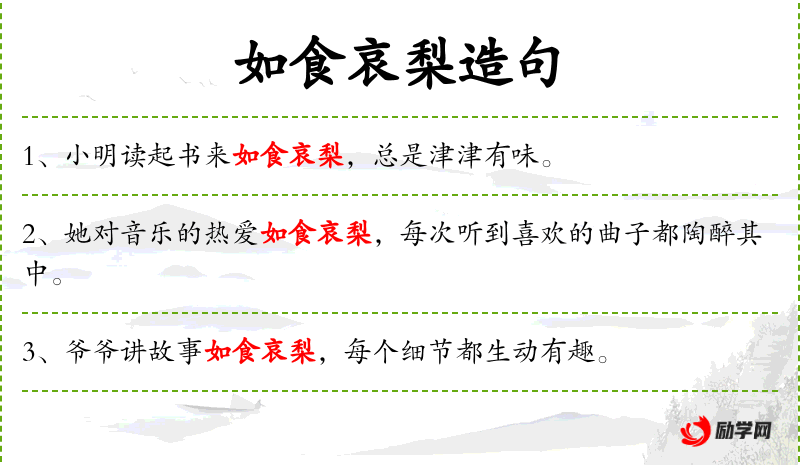 - 读书对小明来说,就像吃哀梨一样,总是让他感到津津有味。