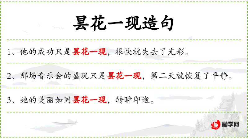 - 只是昙花一现:比喻事物出现的时间非常短暂,转瞬即逝。