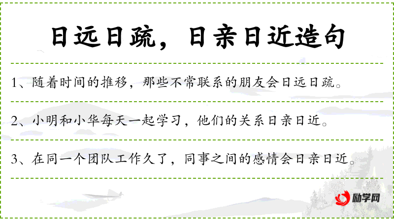 成语:“日远日疏”是传统文化中的一个成语,反映了人对人际关系变化的认识。