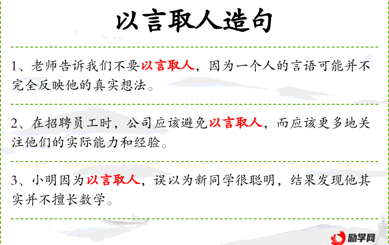 1. 【以言取人】 根据人的口才去判断其智能。