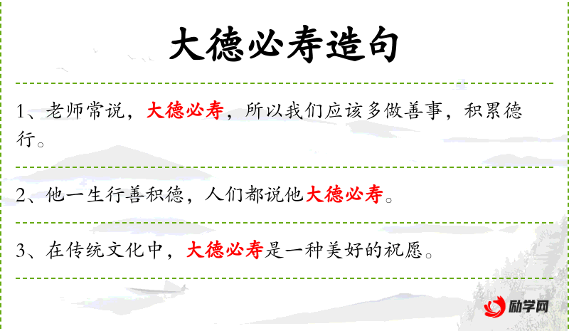 - 礼貌用语:“大德必寿”是一种恭维和祝福的表达方式。
