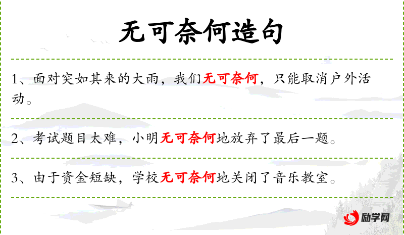 1. 【无可奈何】 奈何:如何,怎么办。指感到没有办法,只有这样了。