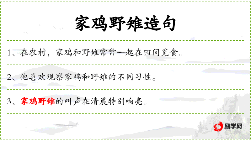 句子:“她能轻易区分家鸡和野雉的羽毛。”