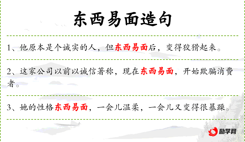 - 东西易面:change face, metaphorically indicating a change in behavior or quality