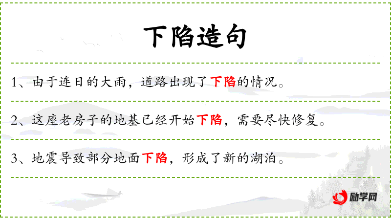 2. 【下陷】 向下或向内凹进:眼眶~|地基~。