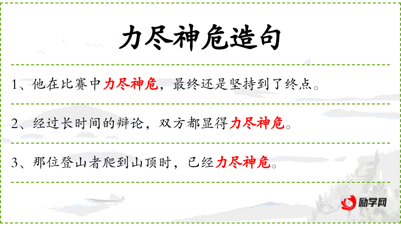 1. 【力尽神危】 危:危急。气力用尽,神色危急。形容用心用力过度,体力不支的样子。