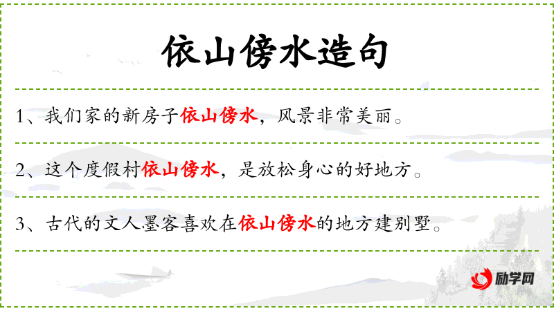 - 文化意义:依山傍水在**文化中象征着吉祥和美好,常用来形容理想的生活环境。