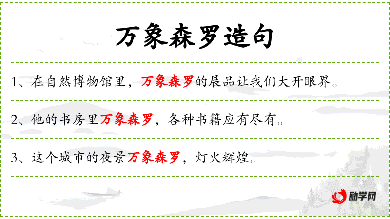 1. 【万象森罗】 - 指天地间纷纷罗列的各种各样的景象。