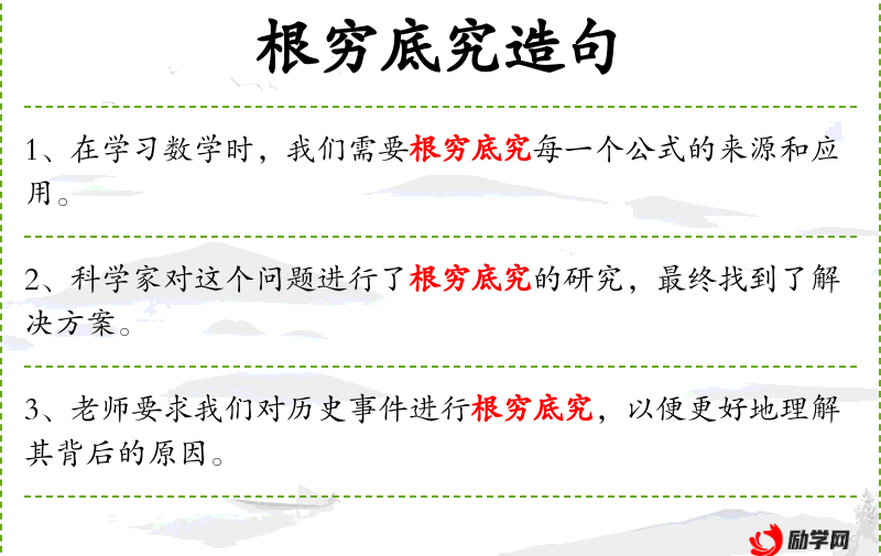 1. 【根穷底究】 底:底细;究:查究。追求根底。一般指追问一件事的原由。