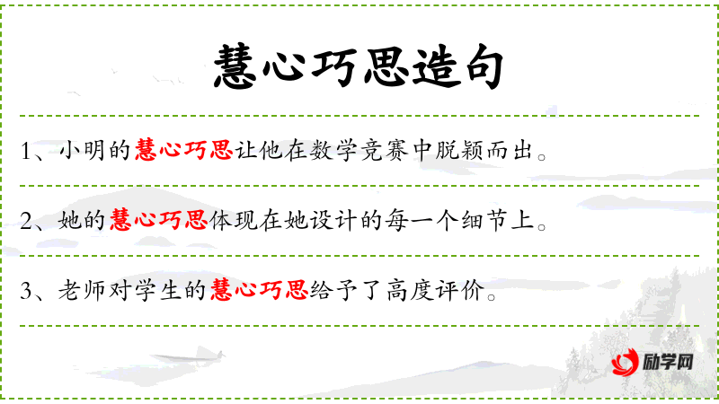 - 宾语:“他的慧心巧思”