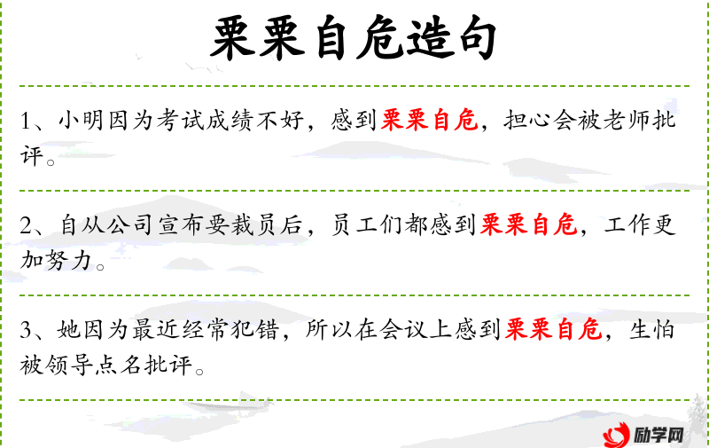4. 【栗栗自危】 栗栗:发抖的样子。自己感到恐惧和危险。